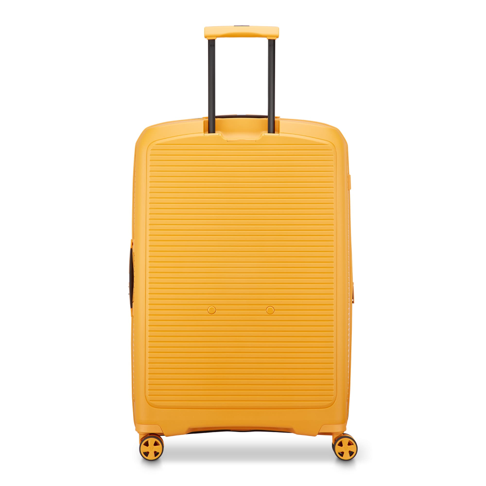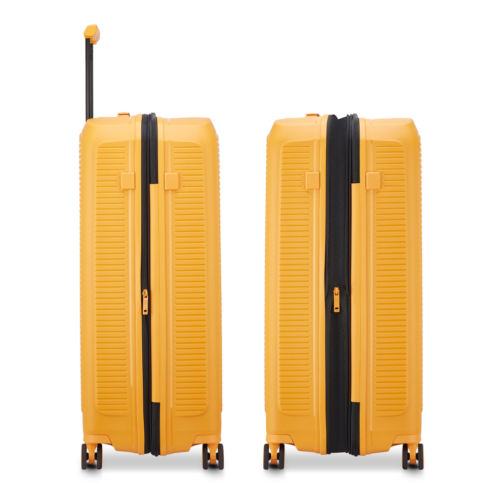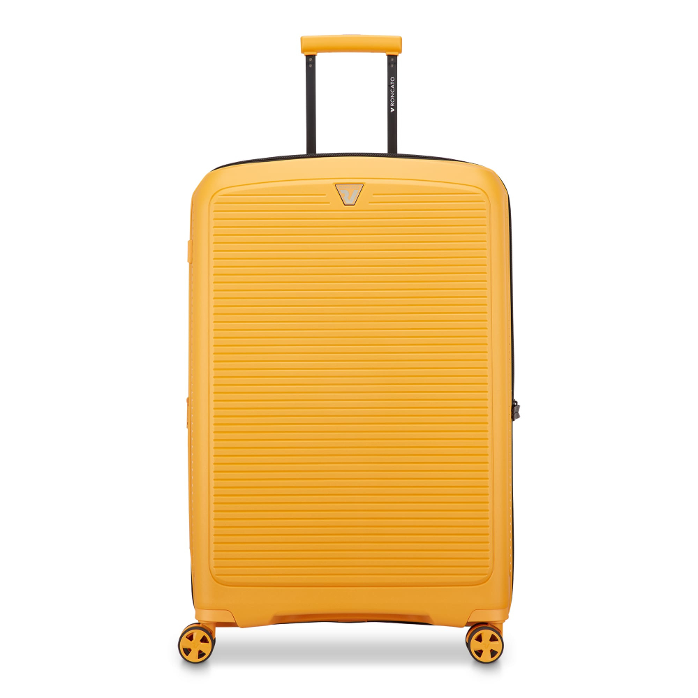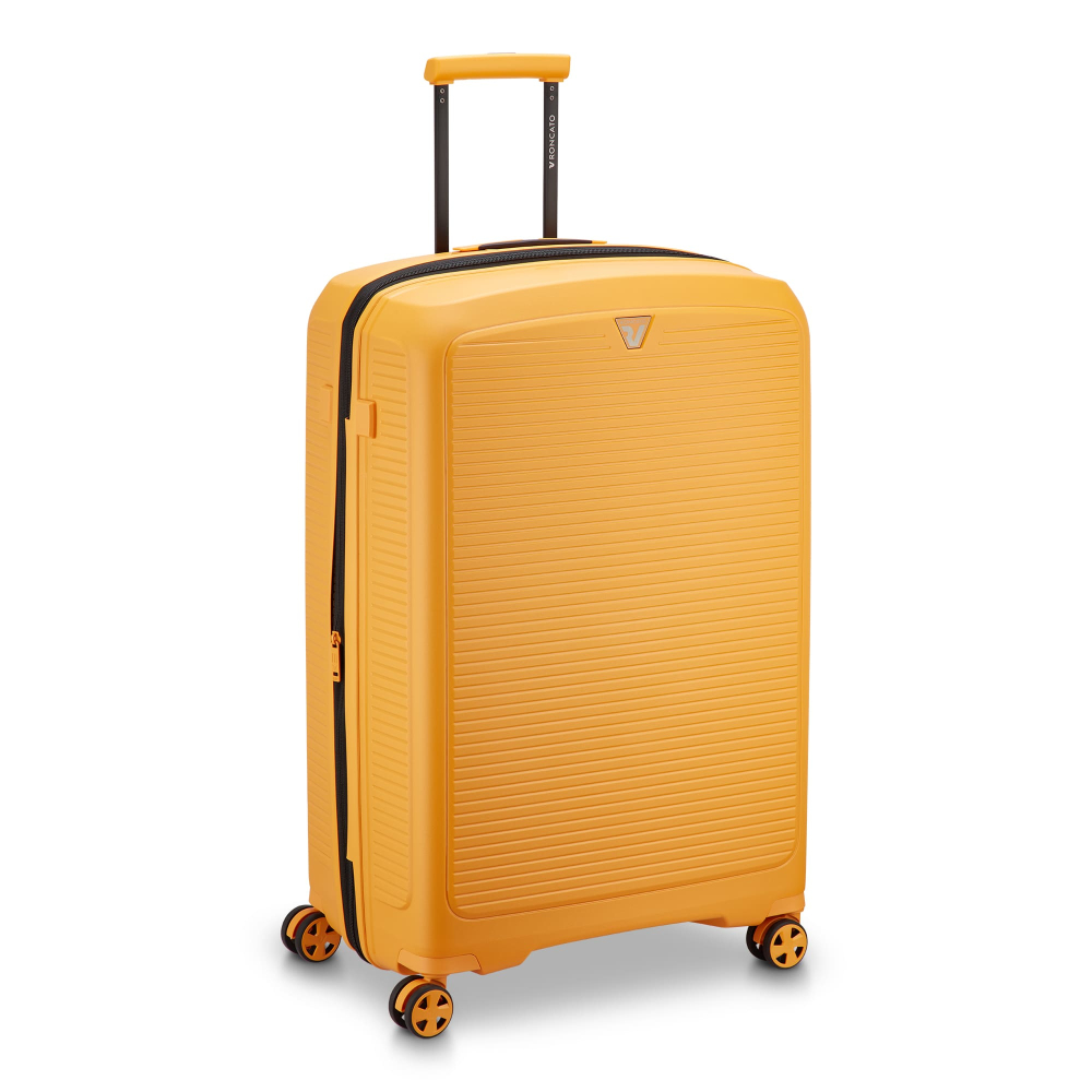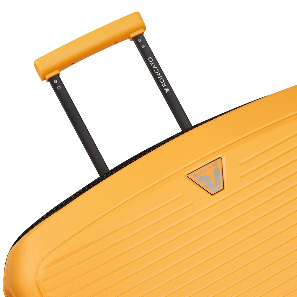Чемодан изготовлен из полипропилена на 100% переработанного материала, который предлагает: максимальную ударопрочность, чрезвычайную прочность, оптимальную лёгкость, термостойкость. Оснащена 4 спаренными и маневренными колесами. Для удобства перемещения предусмотрена гибкая, подъемная пластиковая ручка на верхней и боковой панелях, а также телескопическая ручка. Безопасность и сохранность багажа обеспечивает встроенный кодовый замок с системой TSA. Изделие состоит из двух больших отделений, оснащенных разделителями и эластичными прижимными ремнями. Также имеет расширение для увеличения пространства для вещей.