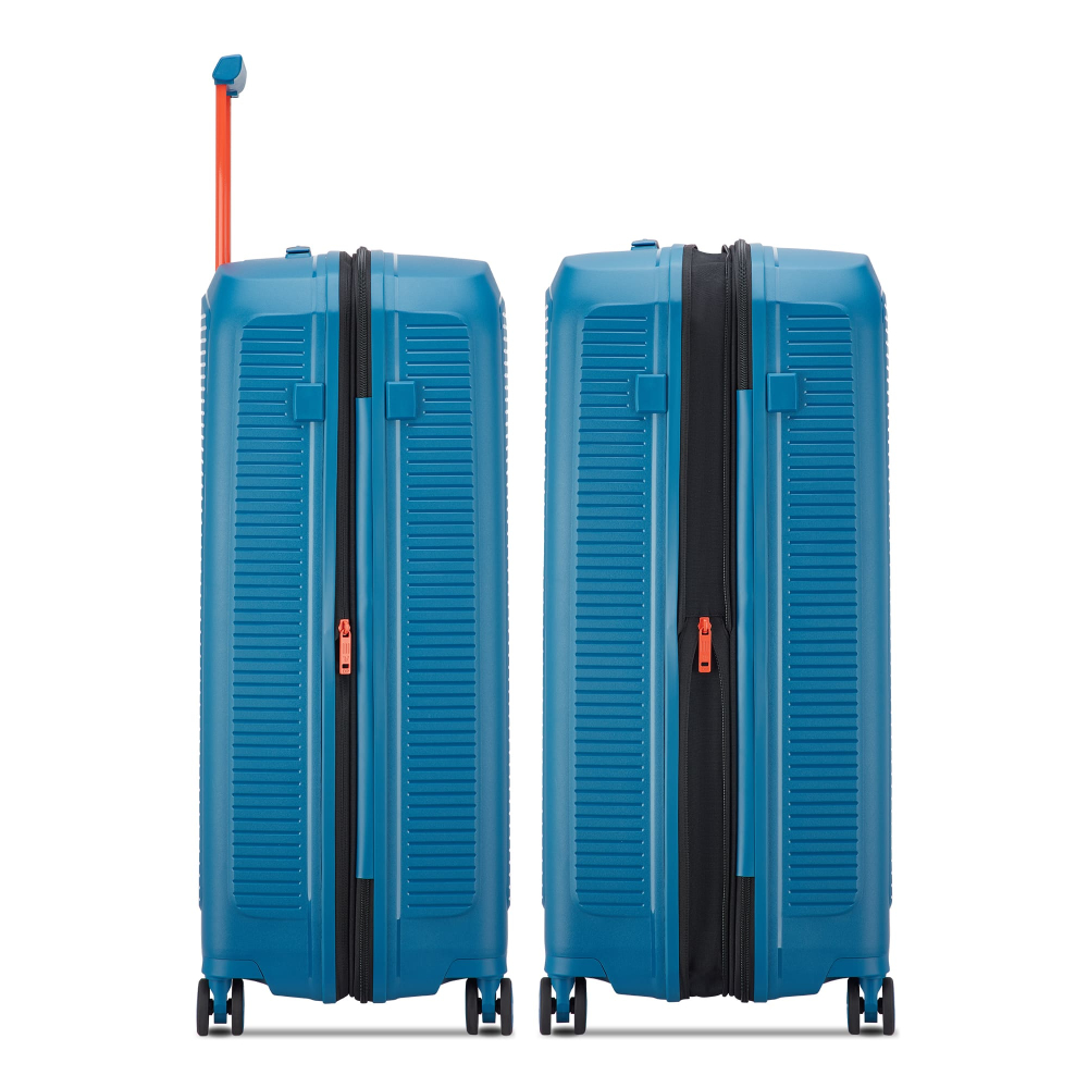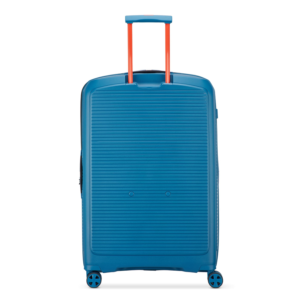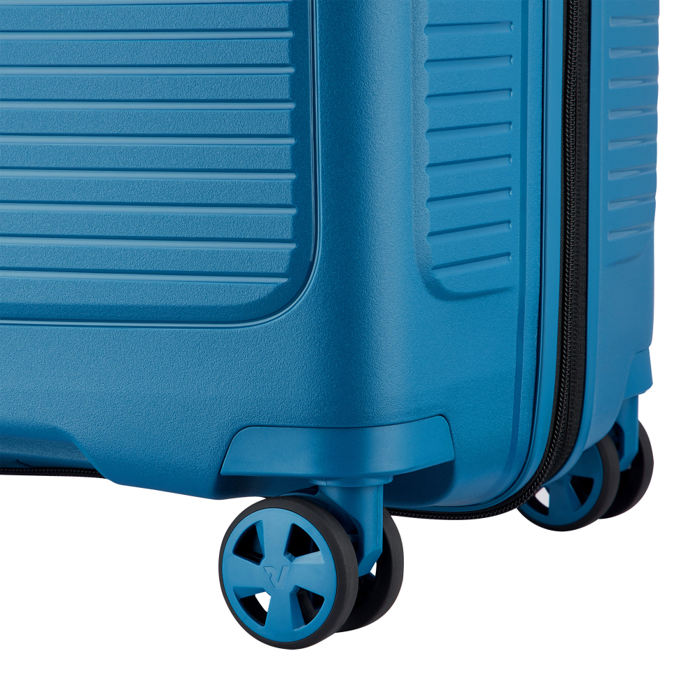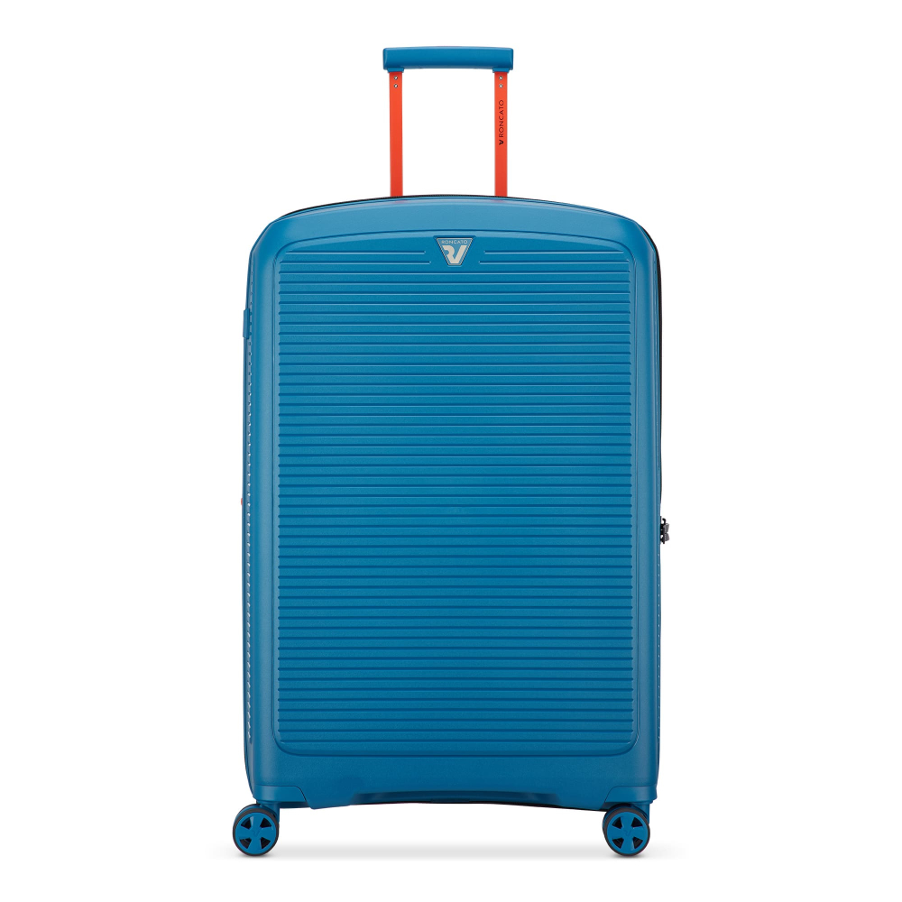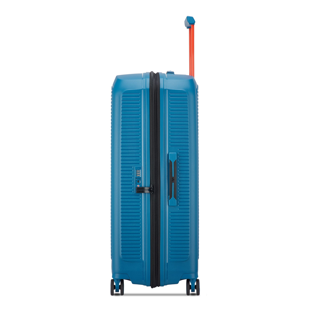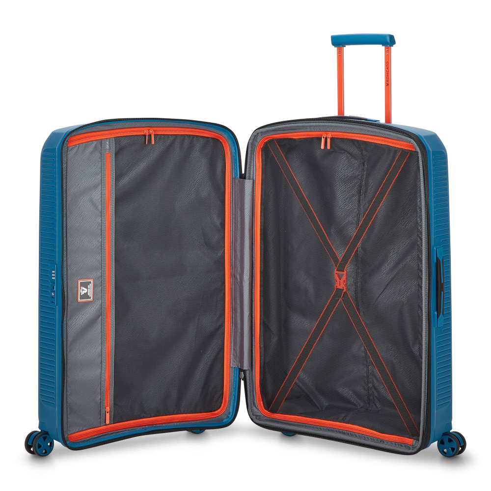 Чемодан изготовлен из полипропилена на 100% переработанного материала, который предлагает: максимальную ударопрочность, чрезвычайную прочность, оптимальную лёгкость, термостойкость. Оснащена 4 спаренными и маневренными колесами. Для удобства перемещения предусмотрена гибкая, подъемная пластиковая ручка на верхней и боковой панелях, а также телескопическая ручка. Безопасность и сохранность багажа обеспечивает встроенный кодовый замок с системой TSA. Изделие состоит из двух больших отделений, оснащенных разделителями и эластичными прижимными ремнями. Также имеет расширение для увеличения пространства для вещей.