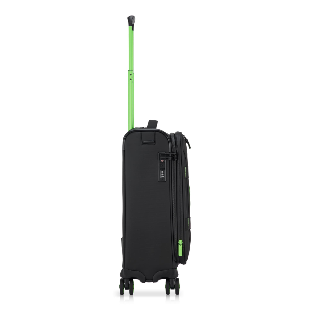 Изделия коллекции изготовлены из волнистого полиэстера 900D с PU-покоем, которое защищает от дождя, брызг, влаги и быстро сохнет. Обработанная поверхность гарантирует высокую стойкость к истиранию и износу, а также превосходную устойчивость к сцеплению и разрывам, даже при интенсивном использовании. Каждая тележка оснащена водонепроницаемой молнией и кодовым замком TSA-системой, что обеспечивает максимальную безопасность ваших личных вещей, содержащихся внутри багажа. Двойные колеса, вращающиеся на 360°, нижняя часть чемодана усилена текстурированным стойким к царапинам резиновым материалом.