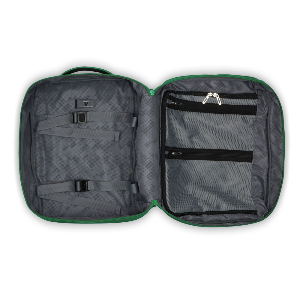 Рюкзак для путешествий – уникальная возможность соединить личные вещи с современными гаджетами. Идеальный вариант для командировок, в которых Вам понадобятся, предметы первой необходимости и место для одежды. Наружная ткань изготовлена из нейлона и полиэстера для обеспечения долговечности и легкости, а внутренняя подложка изготовлена из 100% переработанного RPet. Оснащен вместительным основным отделением и наружными карманами. Также, для удобства перемещения на задней части расположены мягкие плечевые ремни, боковая ручка для горизонтальной переноски и тканевая крепежная планка на телескопической ручке чемодана.