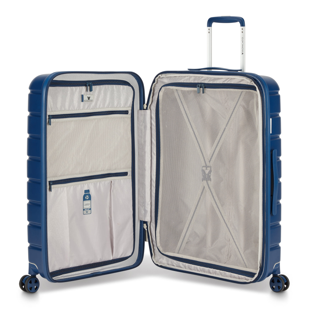 Название коллекции Relife, на самом деле, хочет указать на концепцию, особенно близкую нашим сердцам — дать жизнь материалам, которые иначе остались бы неиспользованными. Оболочка и подложка изготовлены из RPET, материала, а именно из переработанных бутылок, что демонстрирует приверженность Valigeria Roncato к защите нашей планеты, тем самым помогая уменьшить отходы. Кроме того, данная коллекция особенна тем, что есть возможность снять колеса. После снятия колеса при регистрации высота чемодана становится такой же, как и любой другой ручной багаж. Колеса также можно снять, чтобы предотвратить поломку во время транспортировки в самолете, и хранить в удобном футляре.