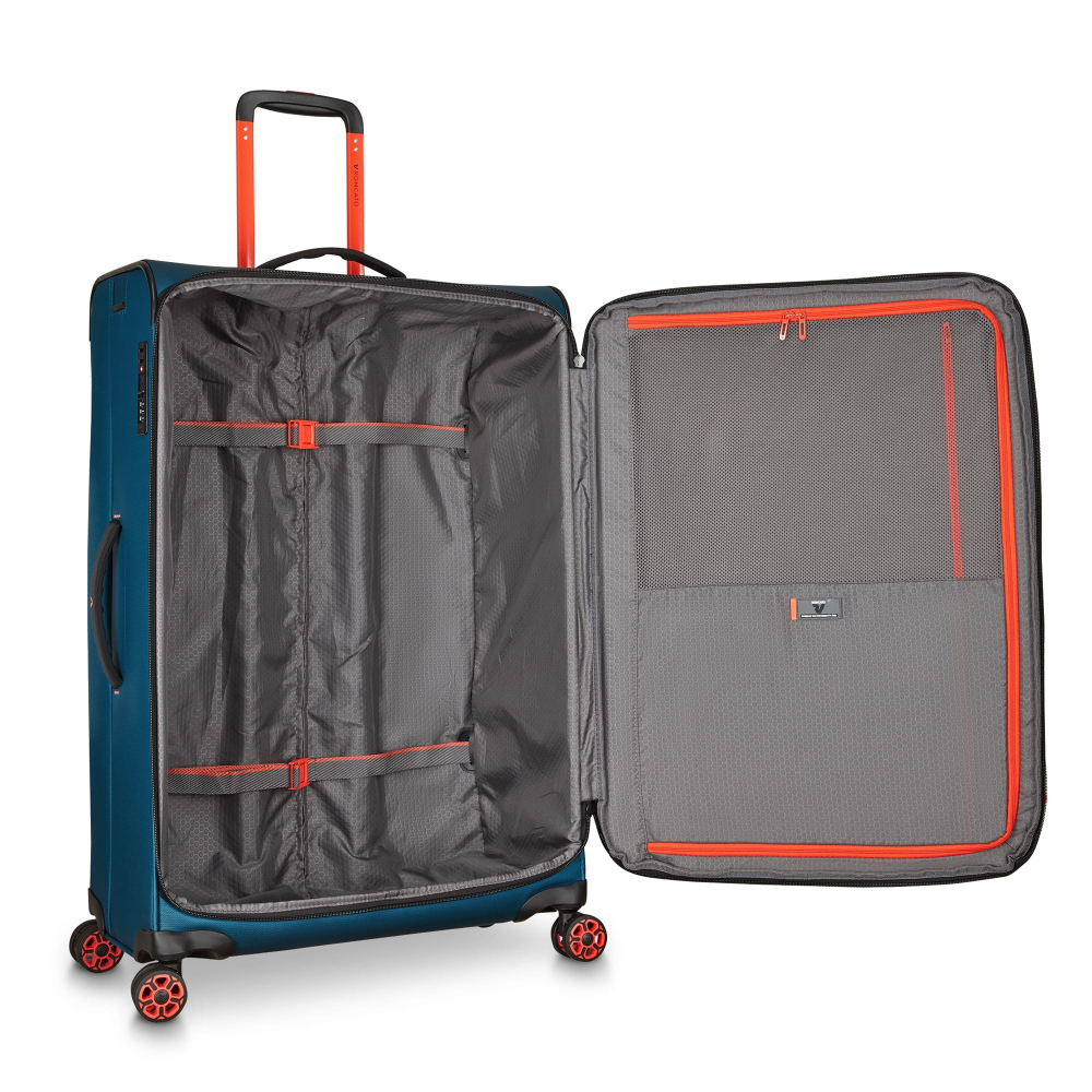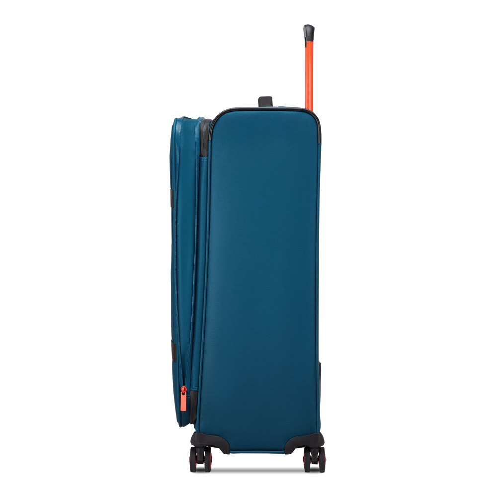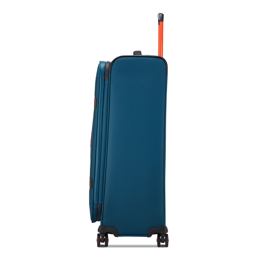 Вироби колекції виготовлені з хвилястого поліестеру 900D з PU-покиттям, яке захищає від дощу, бризок, вологи й швидко сохне. Оброблена поверхня гарантує високу стійкість до стирання та зносу, а також чудову стійкість до зчеплення та розривів, навіть за умов інтенсивного використання. Кожен візок оснащений водонепроникною блискавкою та кодовим замком TSA-системою що забезпечує максимальну безпеку ваших особистих речей, що містяться всередині багажу. Подвійні колеса, що обертаються на 360°, нижня частина валізи посилена текстурованим стійким до подряпин гумовим матеріалом.