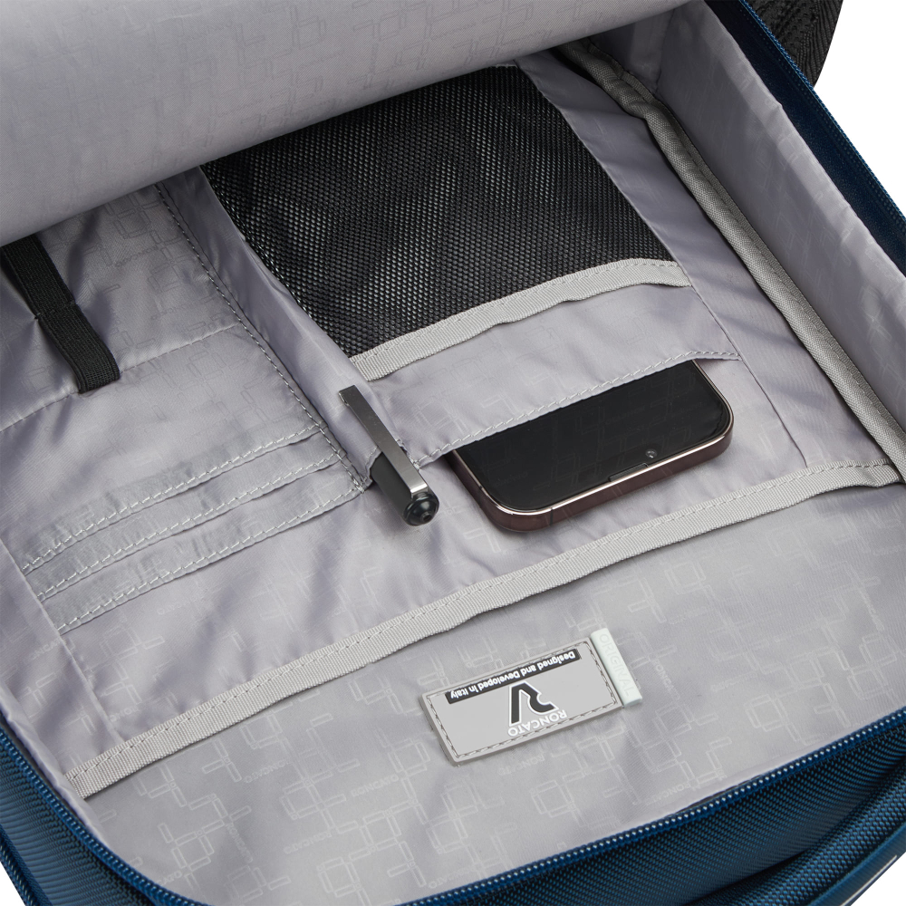 Виріб виготовлений міцного з нейлону щільністю 1680D, з каучуковим покриттям з водовідштовхувальними властивостями. Оснащений двома основними відділами на блискавці, в яких є можливість розмістити ноутбук, планшет, смартфон, пишучі предмети, повербанк та необхідні Вам речі. Переднячастина частина виробу має, додаткову, не велику кишеню з водонепроникною блискавкою та знімним брелоком. Задня частина виробу оснащена розумним рукавом для кріплення на телескопічну ручку валізи, додатково має мʼяку спинку та плечові ремені. Для зручності перенесення обладнаний протиковзкою ручкою.