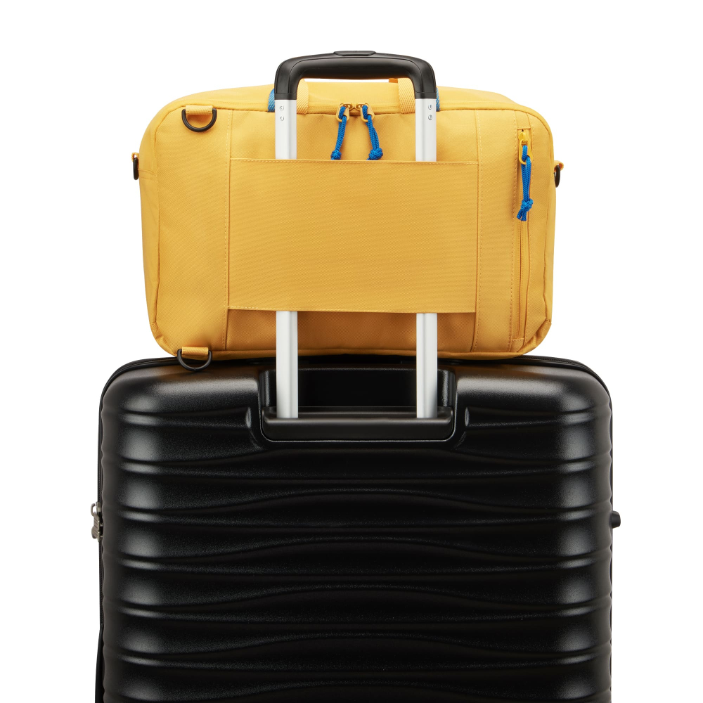 Унікальна дорожня сумка, яка за потреби перетворюється в рюкзак, а в цілому має 3 положення для перенесення: на передліччі, через плече, рюкзак. Зовнішня тканина виготовлена з поліестеру 600X500 для забезпечення довговічності та легкості. Виріб оснащений двома місткими відділами, в яких передбачено місце для ноутбука 15.6", документів та одягу. Зовні кишеня на блискавці для речей першої необхідності. На задній частині планка для кріплення на телескопічну ручку валізи та м'які плечові ремені, які можна сховати у спеціальну кишеню.
