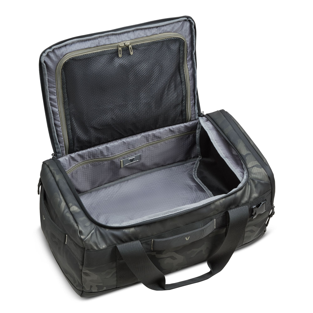 Вироби колекції виготовлені з хвилястого поліестеру 900D з PU-покиттям, яке захищає від дощу, бризок, вологи й швидко сохне. Виріб оснащений: компактним основним відділом з кишенею для дрібних предметів з сітчастою перегородкою для організації та розділення одягу, бічною кишенею з внутрішньою підкладкою з водонепроникного матеріалу, корисна для зберігання взуття або мокрого одягу. Розмір виробу дозволяє брати сумку на борт літака. Дно покрите текстурованою гумою, стійкою до подряпин.