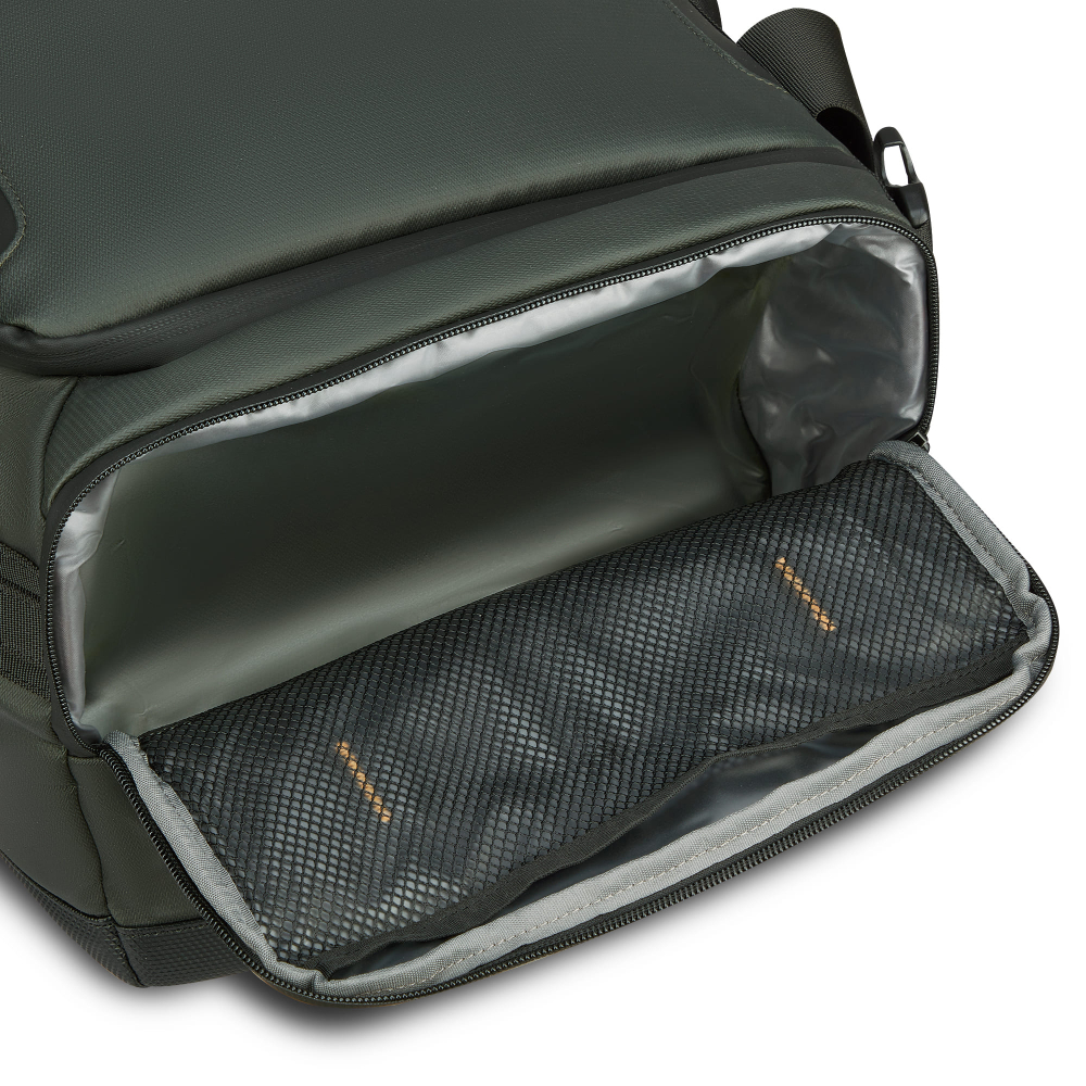 Вироби колекції виготовлені з хвилястого поліестеру 900D з PU-покиттям, яке захищає від дощу, бризок, вологи й швидко сохне. Виріб оснащений: компактним основним відділом з кишенею для дрібних предметів з сітчастою перегородкою для організації та розділення одягу, бічною кишенею з внутрішньою підкладкою з водонепроникного матеріалу, корисна для зберігання взуття або мокрого одягу. Розмір виробу дозволяє брати сумку на борт літака. Дно покрите текстурованою гумою, стійкою до подряпин.