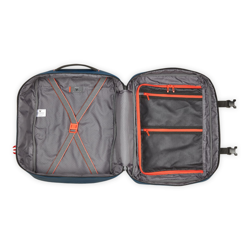 Ідеальний варіант для відряджень в яких Вам знадобляться, предмети першої необхідності і місце для одягу. Вироби колекції виготовлені з хвилястого поліестеру 900D з PU-покиттям, яке захищає від дощу, бризок, вологи й швидко сохне. Виріб оснащений: компактним основним відділом з кишенею для дрібних предметів з сітчастою перегородкою для організації та розділення одягу з еластичними притискними ременями. Розмір виробу дозволяє брати рюкзак на борт літака авіакомпанії EASYJET. Для зручності переміщення на задній частині розміщені м'які плечові ремені, бічна ручка для горизонтального перенесення та тканинна планка для кріплення на телескопічній ручці валізи.