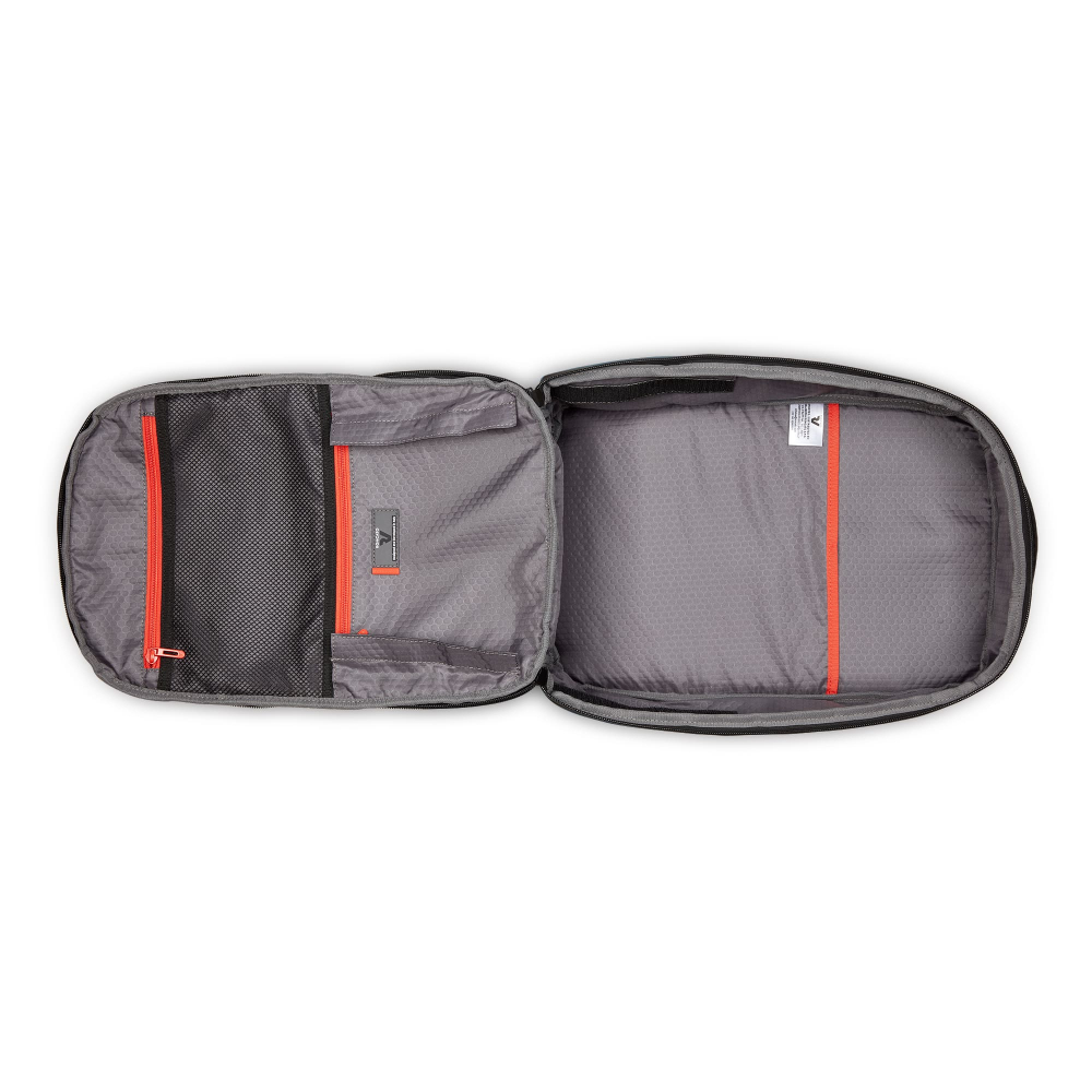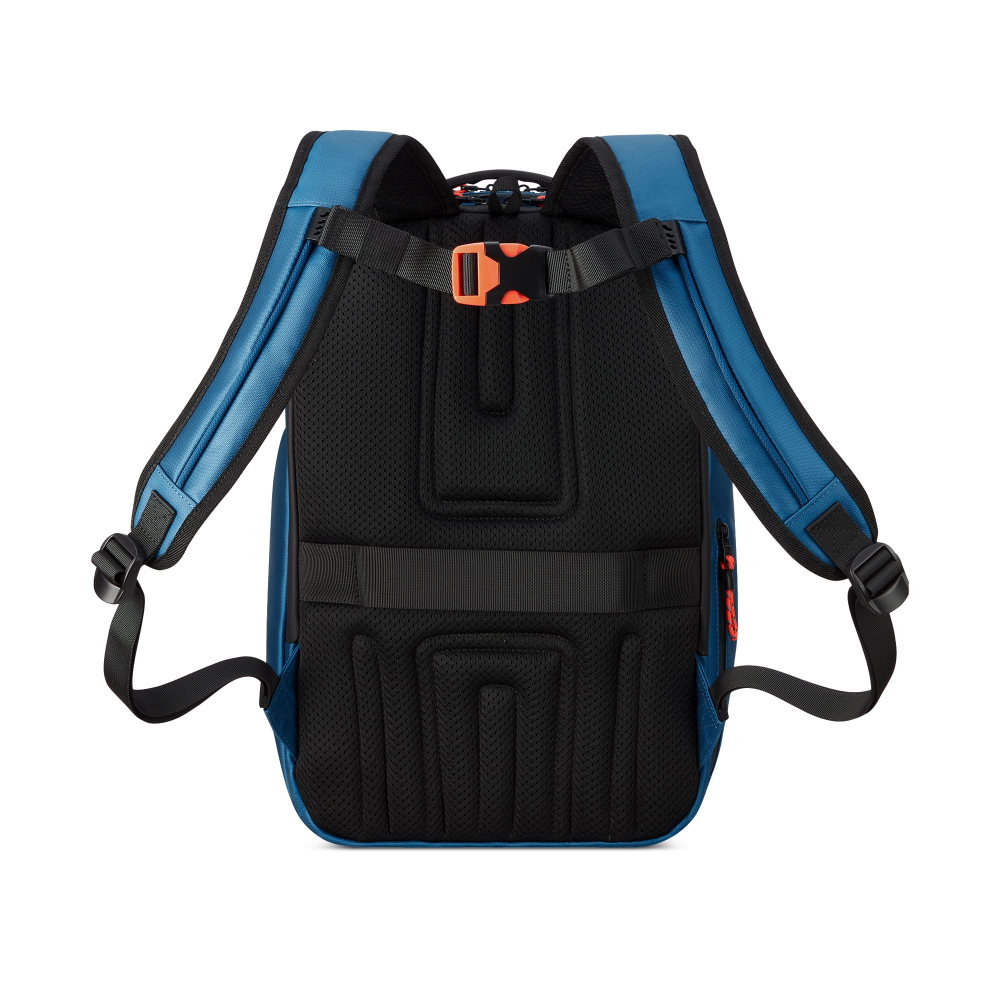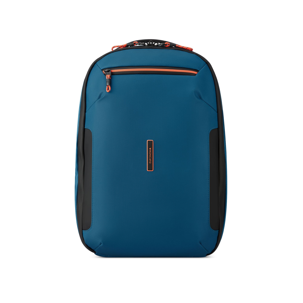 Рюкзак для подорожей-унікальна можливість поєднати особисті речі з сучасними гаджетами. Ідеальний варіант для відряджень в яких Вам знадобляться техніка, предмети першої необхідності і місце для одягу. Вироби колекції виготовлені з хвилястого поліестеру 900D з PU-покиттям, яке захищає від дощу, бризок, вологи й швидко сохне. Виріб оснащений двома основними віддідами, з кишенею для дрібних предметів з сітчастою перегородкою для організації та розділення одягу. Другий відділ призначений для ноутбука 15.6", планшету та документів формату А4. Також, передбачена бічна кишеня для пляшки/парасольки. Для зручності переміщення на задній частині розміщені м'які плечові ремені, планка для фіксації на телескопічній системі валізи, можливість застібнути плечові ремені фіксатором на грудях та ручка для вертикального перенесення.