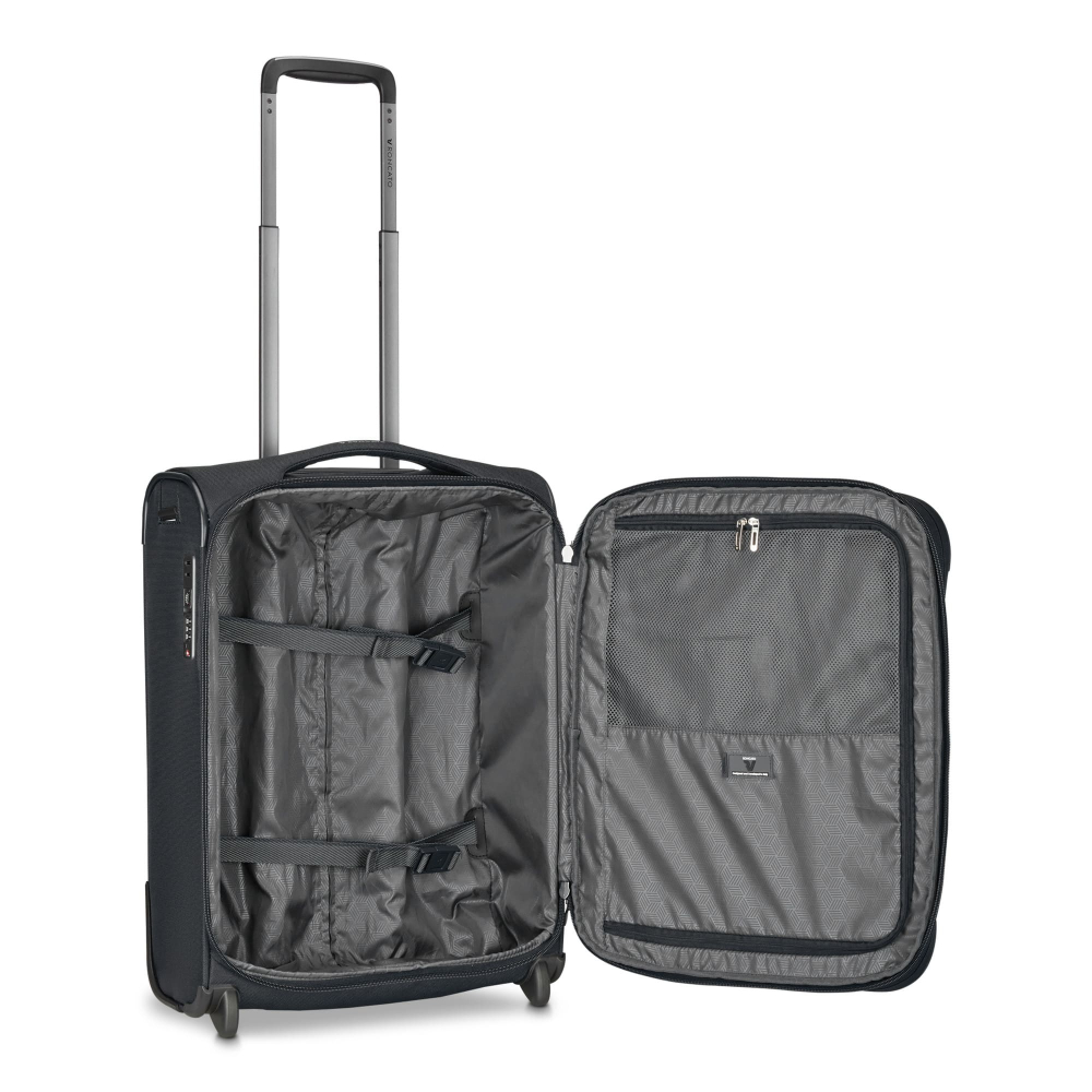Gateway – це нова колекція тканинних валіз від Roncato, яка поєднує сучасний дизайн з винятковою функціональністю. Колекція включає широкий асортимент товарів: рюкзаки-ручна поклажа, ідеальні для недорогих подорожей, сумки на колесах, косметичні сумки, дорожні сумки, сумки для одягу (портплед) та косметичні футляри, створюючи повний асортимент для будь-якої пригоди. Ця лінійка розроблена для тих, хто любить подорожувати без компромісів, пропонуючи легкі, добре організовані вироби, які готові задовольнити всі потреби тих, хто подорожує у відпустку чи на роботу. Подорожувати з Gateway означає пересуватися безпечно, практично, легко та стильно.