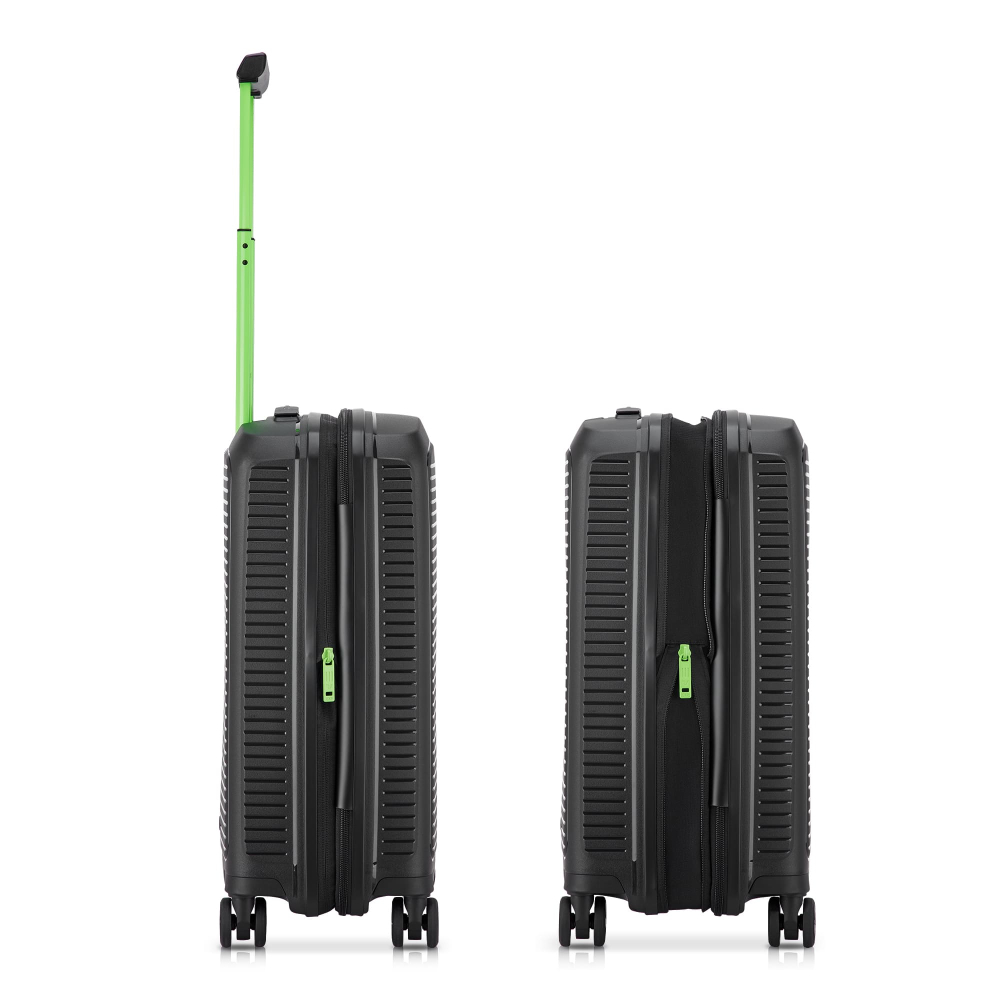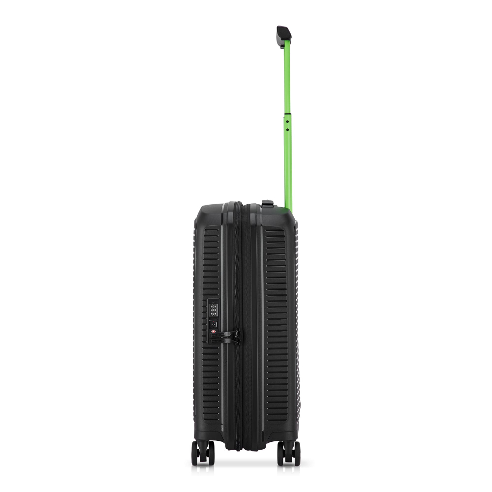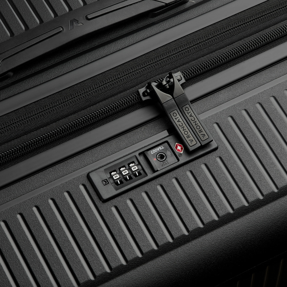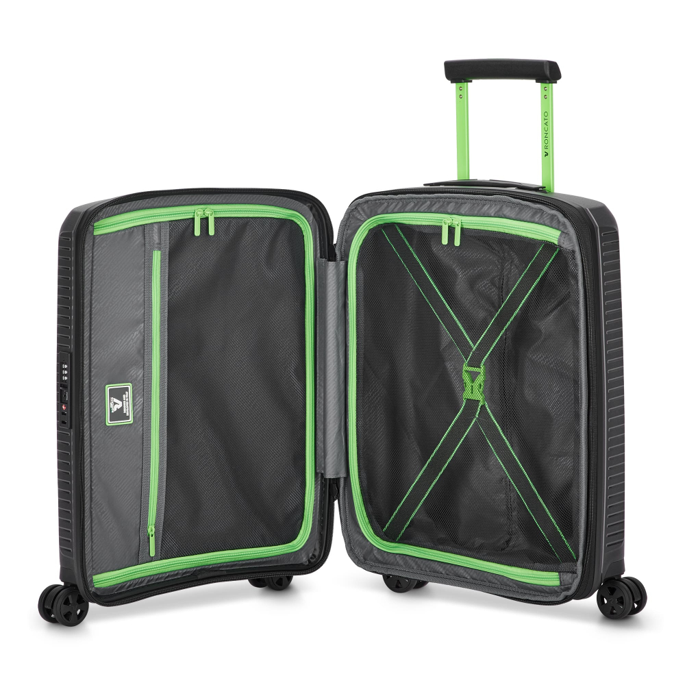 Валіза виготовлена з поліпропілену на 100% переробленого матеріалу, який пропонує: максимальну ударостійкість, надзвичайну міцність, оптимальну легкість, термостійкість. Оснащена 4 спареними і маневреними колесами. Для зручності переміщення передбачена еластична, підйомна пластикова ручка на верхній та бічній панелях, а також телескопічна ручка. Безпека і збереження багажу забезпечує вбудований кодовий замок з системою TSA. Виріб складається з двох великих відділень, оснащених роздільниками та еластичними притискними ременями. Також, має розширення для збільшення простору для речей.