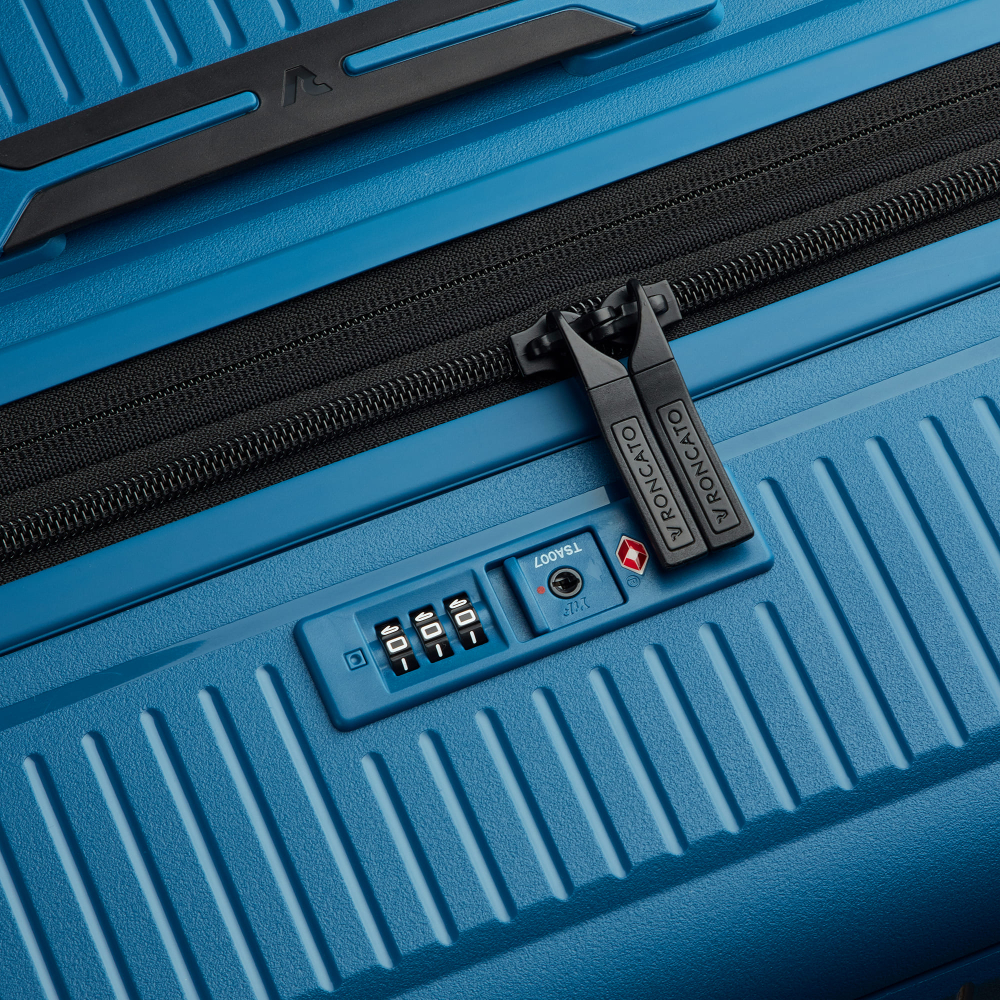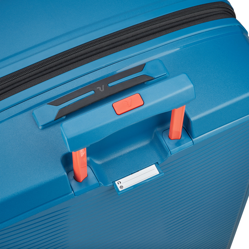 Валіза виготовлена з поліпропілену на 100% переробленого матеріалу, який пропонує: максимальну ударостійкість, надзвичайну міцність, оптимальну легкість, термостійкість. Оснащена 4 спареними і маневреними колесами. Для зручності переміщення передбачена еластична, підйомна пластикова ручка на верхній та бічній панелях, а також телескопічна ручка. Безпека і збереження багажу забезпечує вбудований кодовий замок з системою TSA. Виріб складається з двох великих відділень, оснащених роздільниками та еластичними притискними ременями. Також, має розширення для збільшення простору для речей.