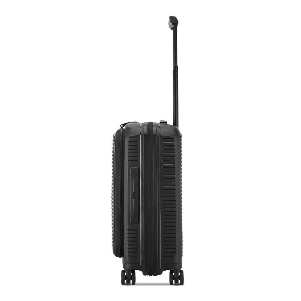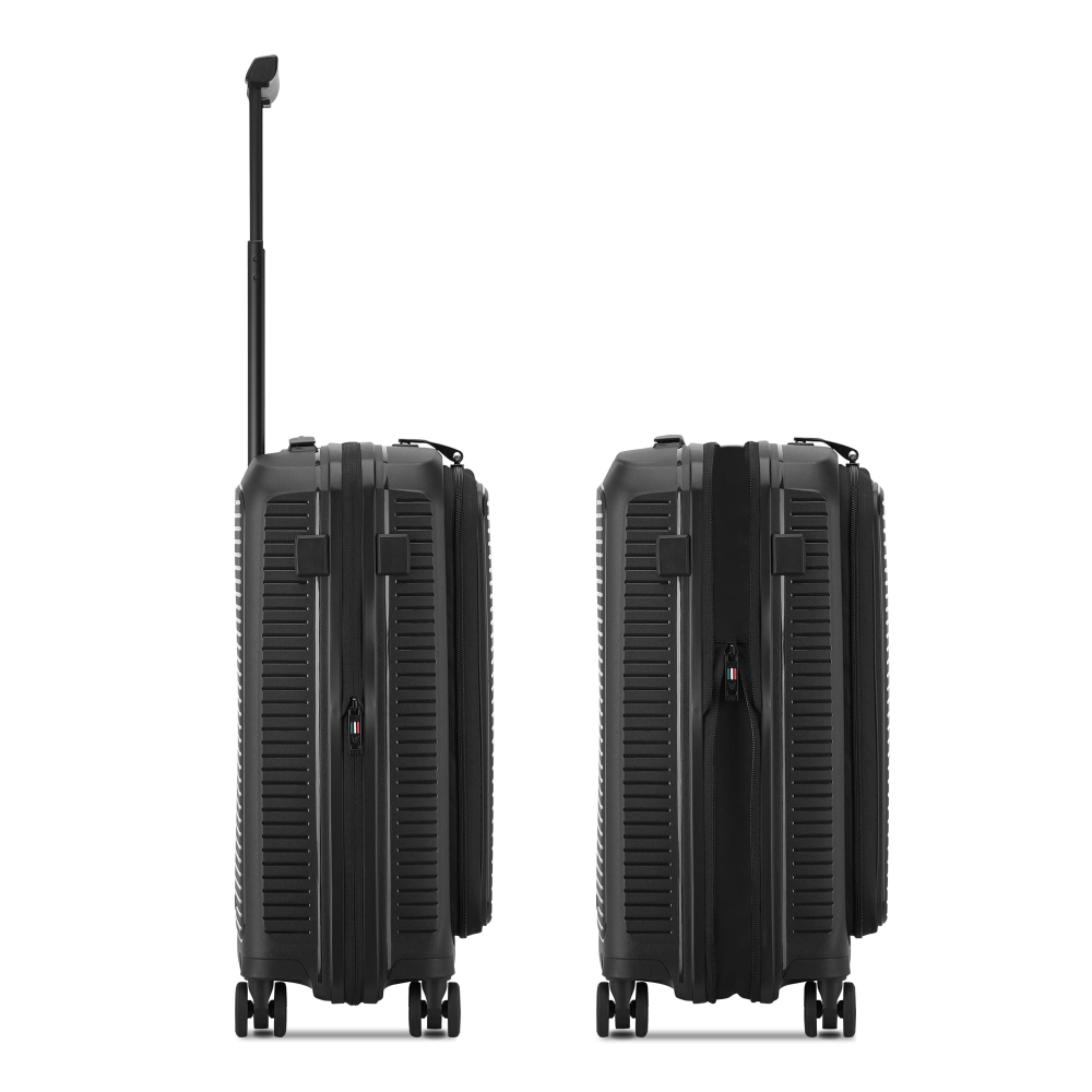 Валіза виготовлена з поліпропілену на 100% переробленого матеріалу, який пропонує: максимальну ударостійкість, надзвичайну міцність, оптимальну легкість, термостійкість. Оснащена 4 спареними і маневреними колесами. Для зручності переміщення передбачена еластична, підйомна пластикова ручка на верхній та бічній панелях, а також телескопічна ручка. Безпека і збереження багажу забезпечує вбудований кодовий замок з системою TSA. Серед найцінніших особливостей – інноваційна система FLAT TOP: кришка, що відкривається на 90° замість центрального отвору. Дизайн розроблений для зменшення об'єму та полегшення доступу до вмісту.