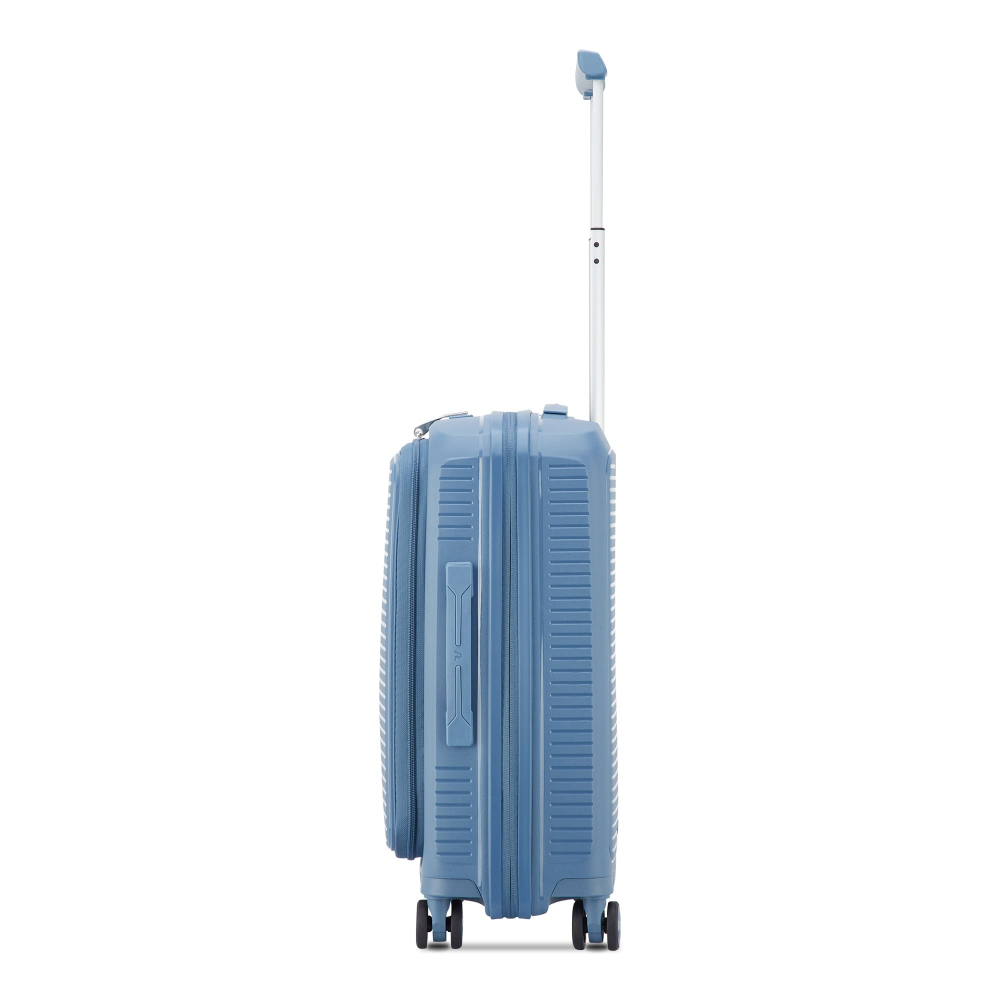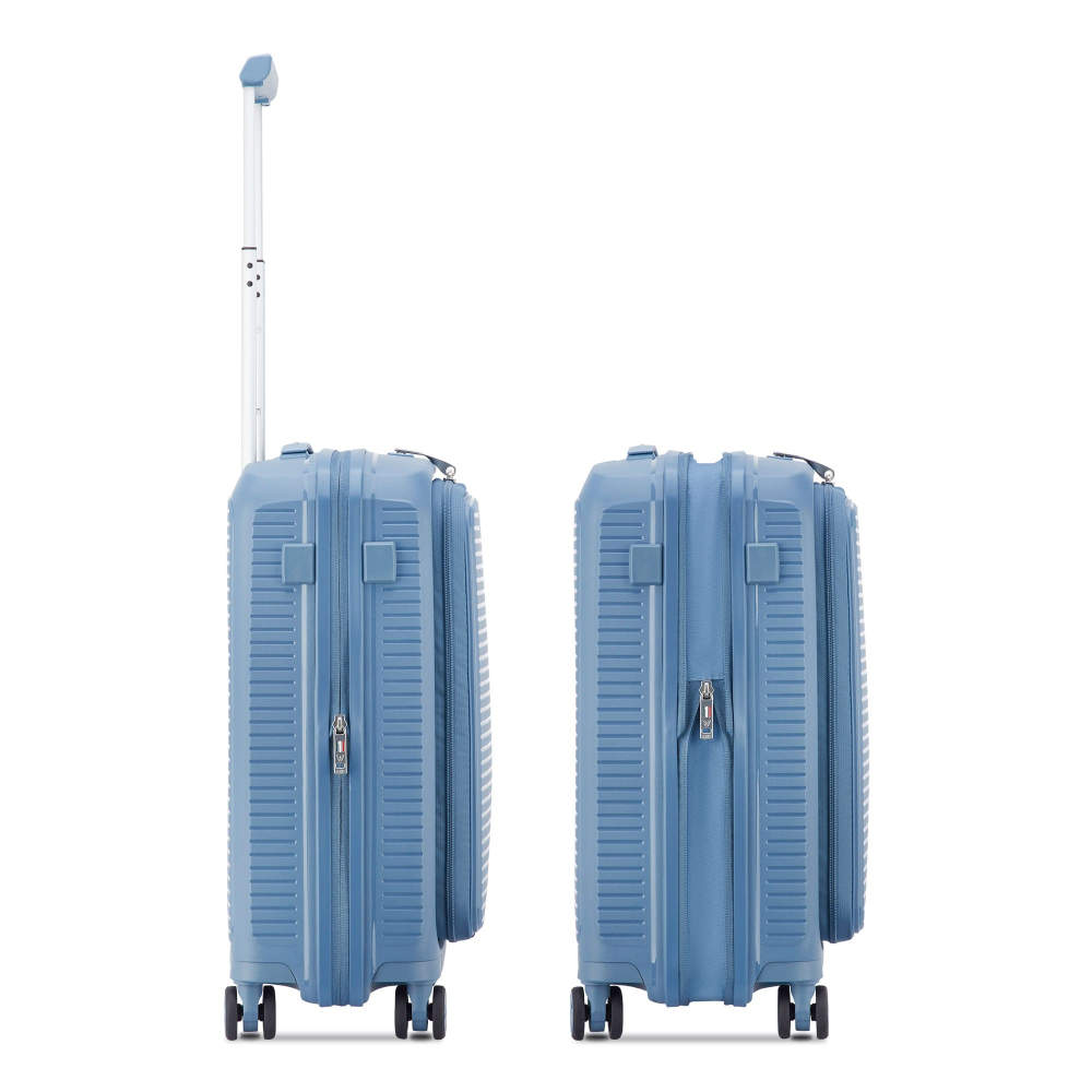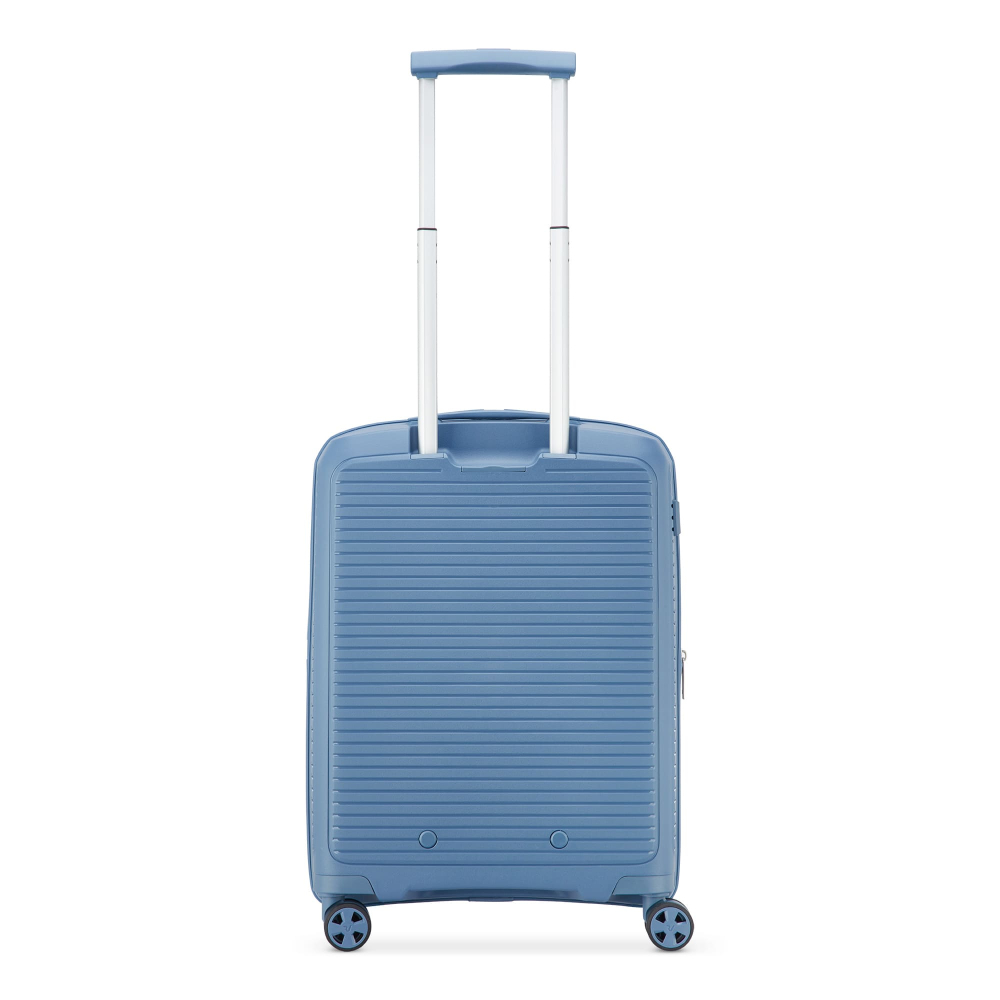 Валіза виготовлена з поліпропілену на 100% переробленого матеріалу, який пропонує: максимальну ударостійкість, надзвичайну міцність, оптимальну легкість, термостійкість. Оснащена 4 спареними і маневреними колесами. Для зручності переміщення передбачена еластична, підйомна пластикова ручка на верхній та бічній панелях, а також телескопічна ручка. Безпека і збереження багажу забезпечує вбудований кодовий замок з системою TSA. Серед найцінніших особливостей – інноваційна система FLAT TOP: кришка, що відкривається на 90° замість центрального отвору. Дизайн розроблений для зменшення об'єму та полегшення доступу до вмісту.