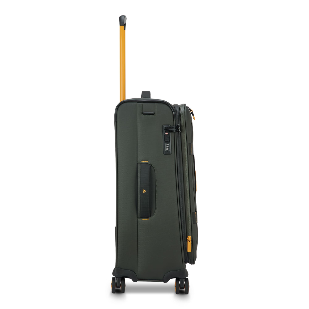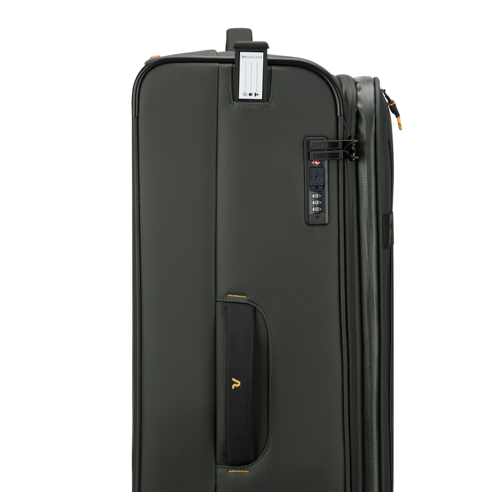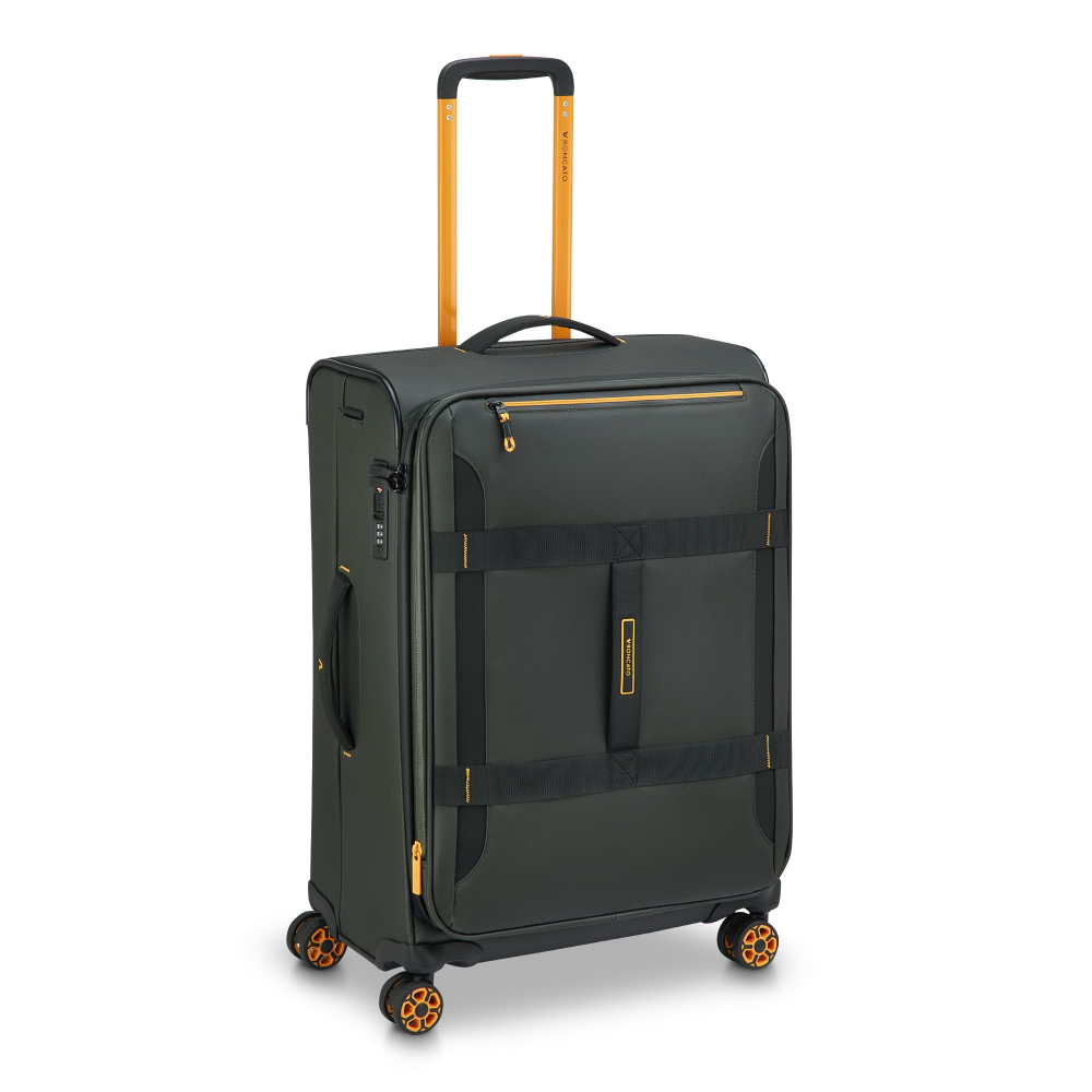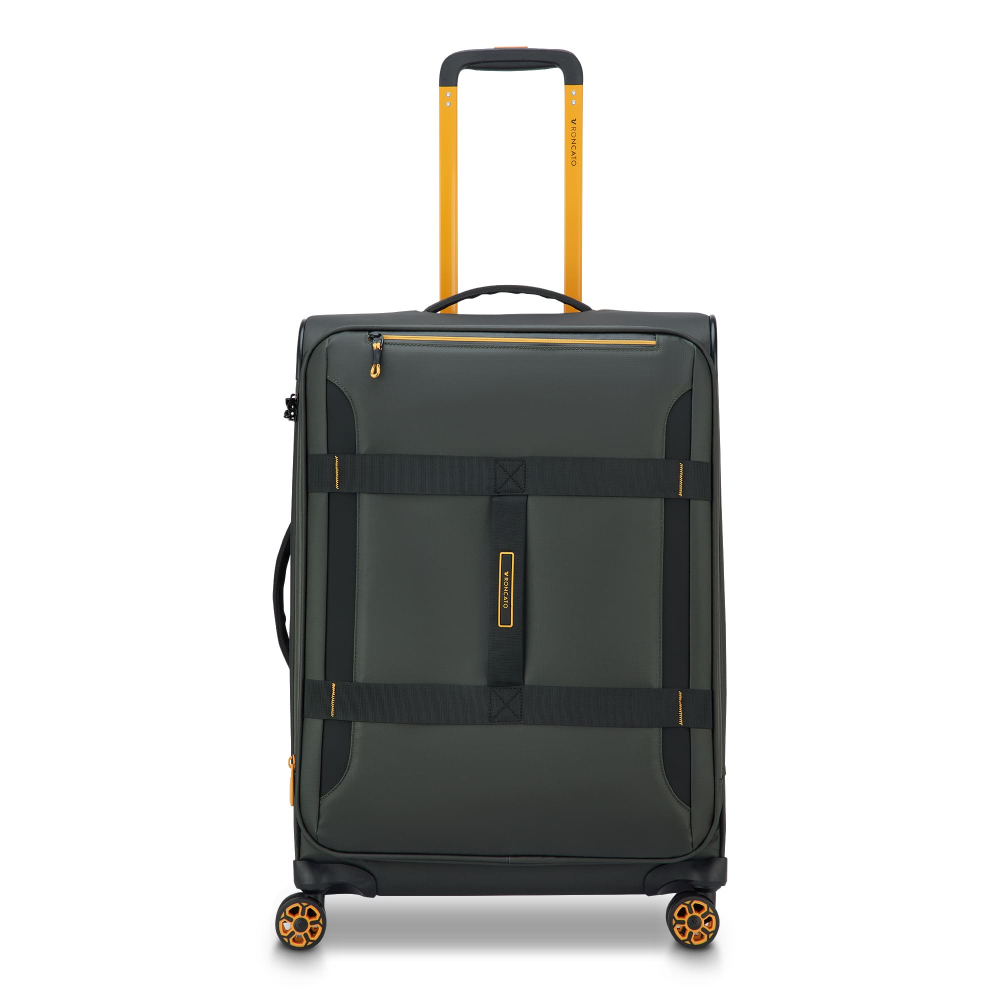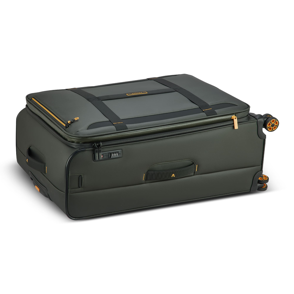 Вироби колекції виготовлені з хвилястого поліестеру 900D з PU-покиттям, яке захищає від дощу, бризок, вологи й швидко сохне. Оброблена поверхня гарантує високу стійкість до стирання та зносу, а також чудову стійкість до зчеплення та розривів, навіть за умов інтенсивного використання. Кожен візок оснащений водонепроникною блискавкою та кодовим замком TSA-системою що забезпечує максимальну безпеку ваших особистих речей, що містяться всередині багажу. Подвійні колеса, що обертаються на 360°, нижня частина валізи посилена текстурованим стійким до подряпин гумовим матеріалом.