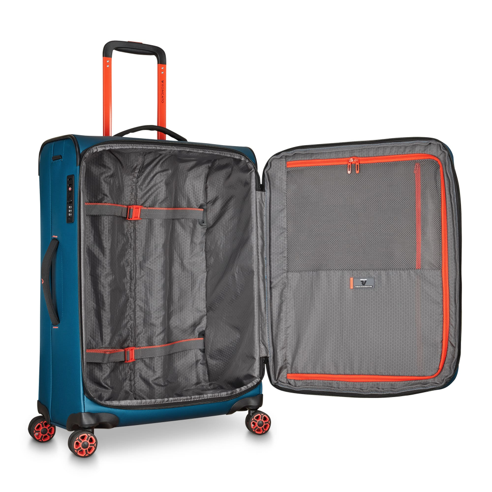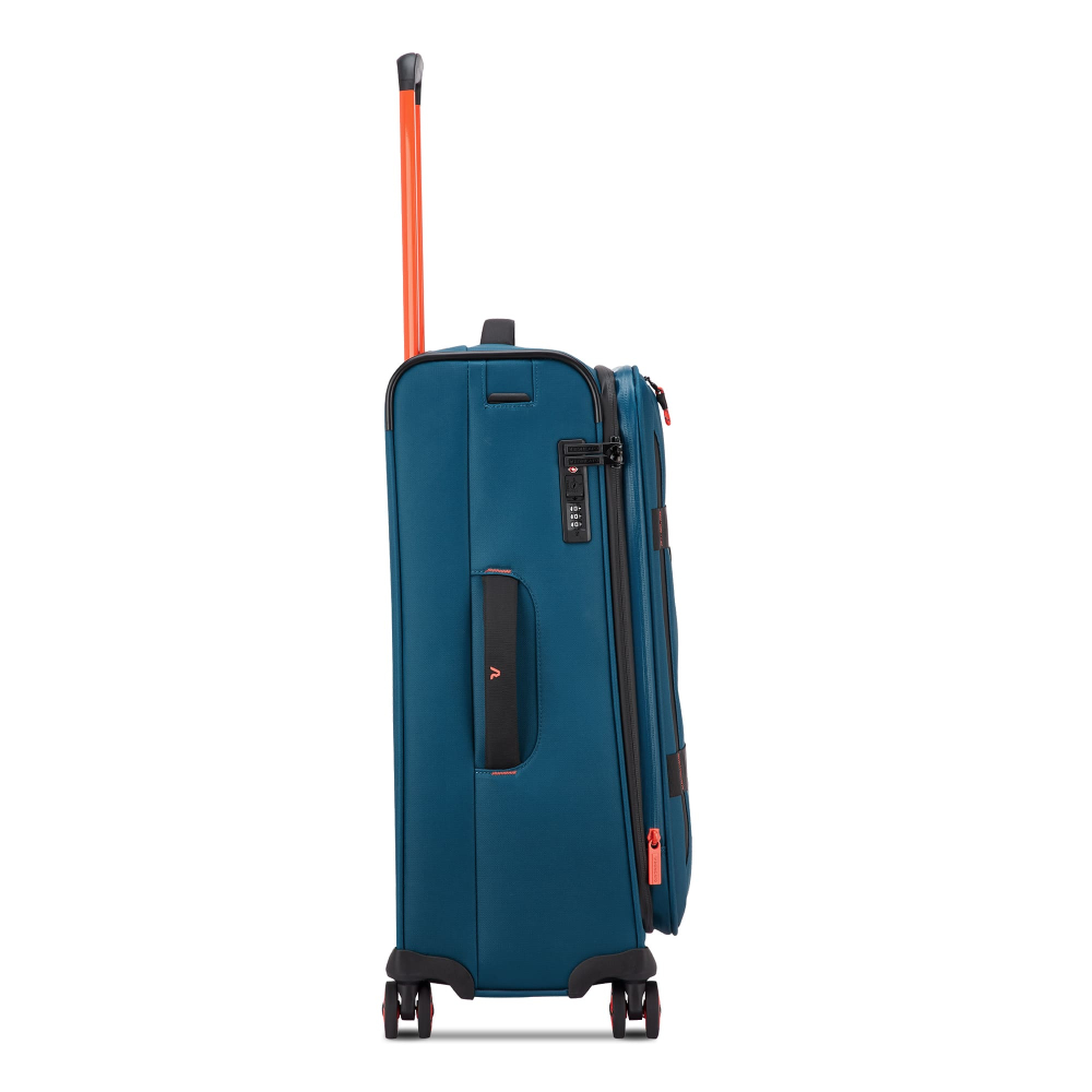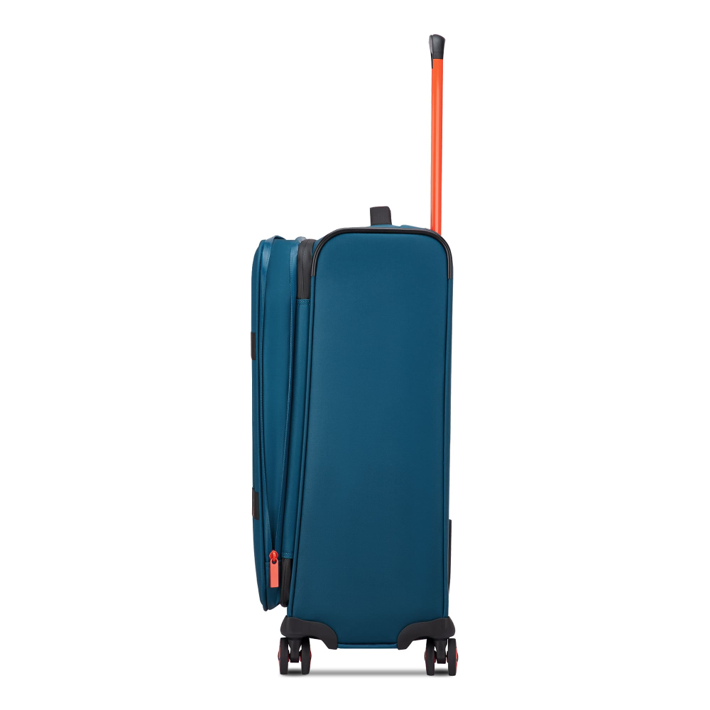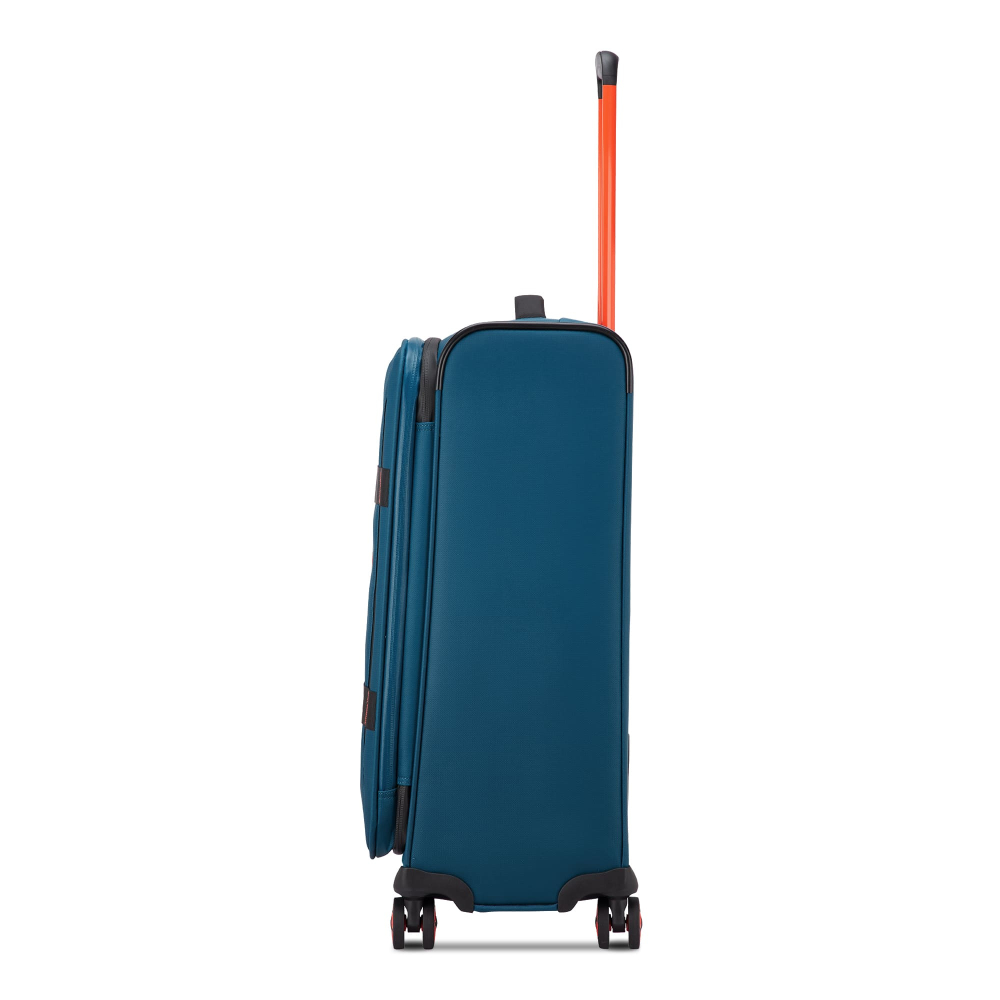 Вироби колекції виготовлені з хвилястого поліестеру 900D з PU-покиттям, яке захищає від дощу, бризок, вологи й швидко сохне. Оброблена поверхня гарантує високу стійкість до стирання та зносу, а також чудову стійкість до зчеплення та розривів, навіть за умов інтенсивного використання. Кожен візок оснащений водонепроникною блискавкою та кодовим замком TSA-системою що забезпечує максимальну безпеку ваших особистих речей, що містяться всередині багажу. Подвійні колеса, що обертаються на 360°, нижня частина валізи посилена текстурованим стійким до подряпин гумовим матеріалом.