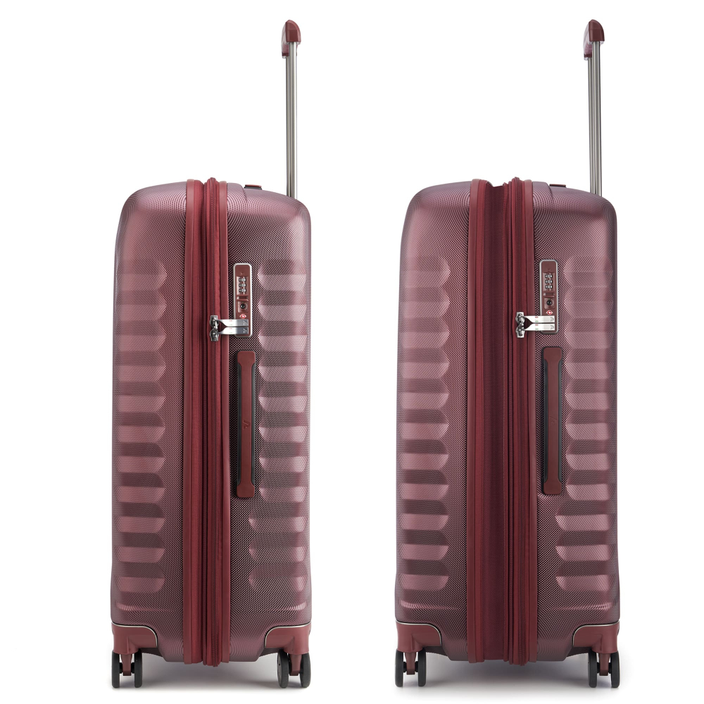 Валіза оснащена подвійними безшумними колесами, що обертаються на 360̊, які надають виробу маневреність, вбудованим кодовим замком з системою TSA, подвійним захистом блискавки High Tech Security Zip, сталевою, зміцненою телескопічною системою, прогумованими підйомними ручками для зручності переміщення, відмінною організацією всередині та знімною підкладкою. Також, дана колекція з розширенням, що дає +25% місткості валізам.
