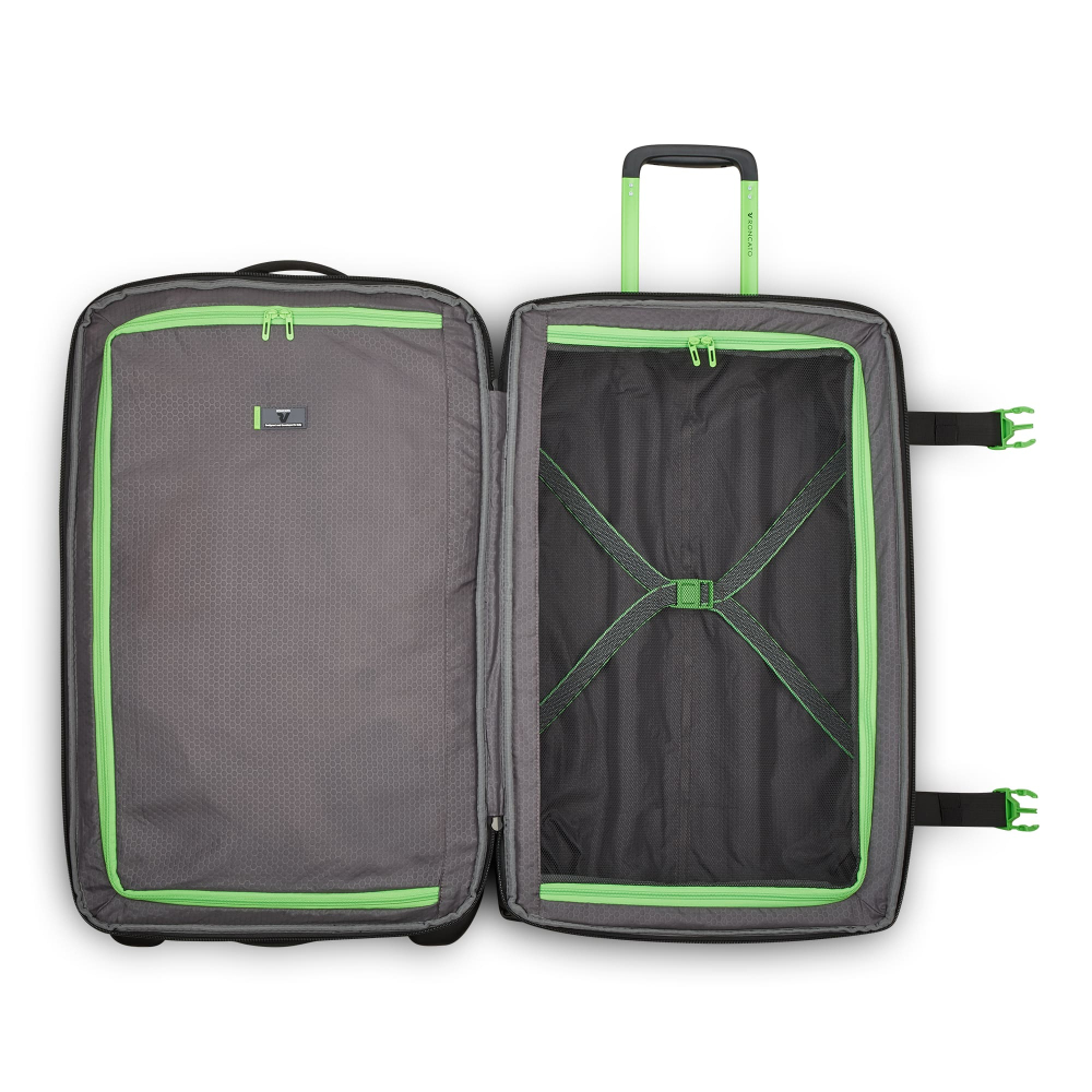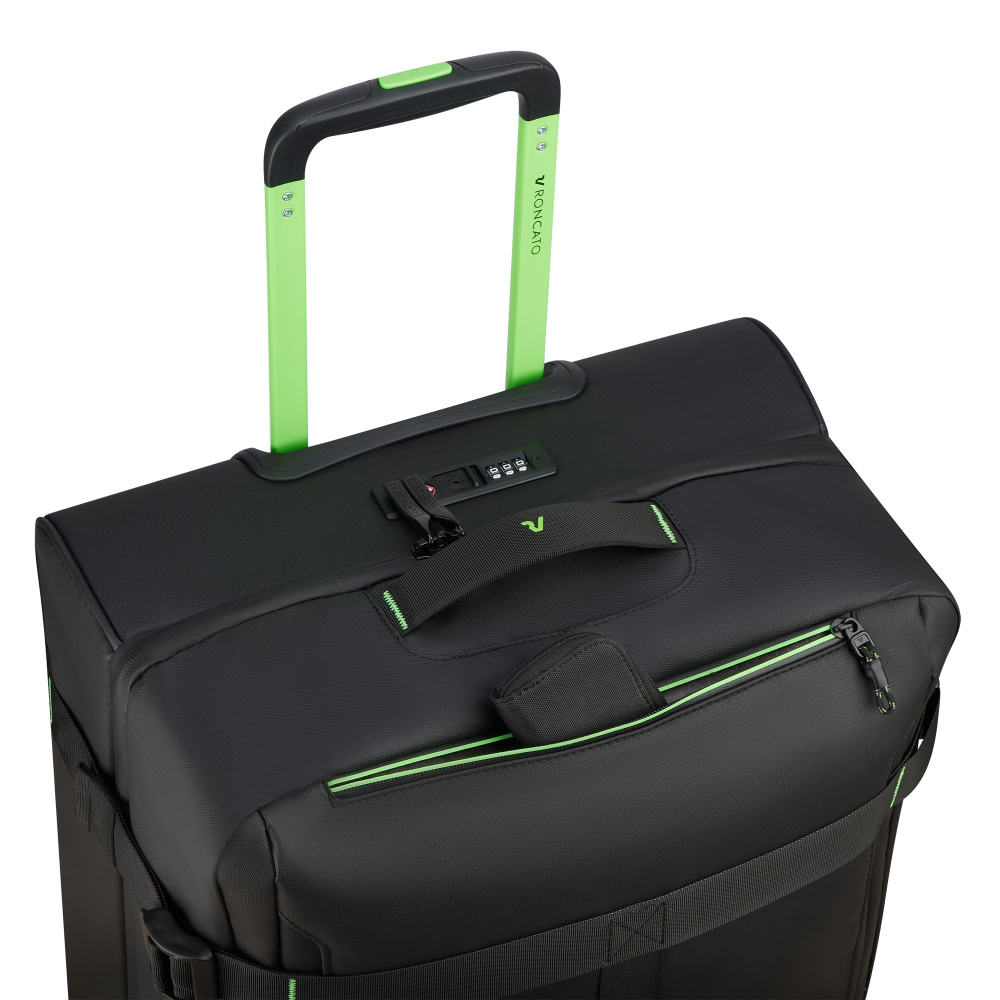 Вироби колекції виготовлені з хвилястого поліестеру 900D з PU-покиттям, яке захищає від дощу, бризок, вологи й швидко сохне. Оброблена поверхня гарантує високу стійкість до стирання та зносу, а також чудову стійкість до зчеплення та розривів, навіть за умов інтенсивного використання. Кожна сумка оснащена водонепроникною блискавкою та кодовим замком TSA-системою що забезпечує максимальну безпеку ваших особистих речей. Практичні відділення з перегородками на блискавці, еластичні ремені для одягу та велика кишеня для розділення брудного одягу. Наявна нижня ручка для полегшення підйому багажу, колеса для зручності переміщення та ніжки для стійкості.