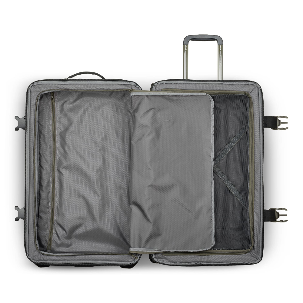 Вироби колекції виготовлені з хвилястого поліестеру 900D з PU-покиттям, яке захищає від дощу, бризок, вологи й швидко сохне. Оброблена поверхня гарантує високу стійкість до стирання та зносу, а також чудову стійкість до зчеплення та розривів, навіть за умов інтенсивного використання. Кожна сумка оснащена водонепроникною блискавкою та кодовим замком TSA-системою що забезпечує максимальну безпеку ваших особистих речей. Практичні відділення з перегородками на блискавці, еластичні ремені для одягу та велика кишеня для розділення брудного одягу. Наявна нижня ручка для полегшення підйому багажу, колеса для зручності переміщення та ніжки для стійкості.