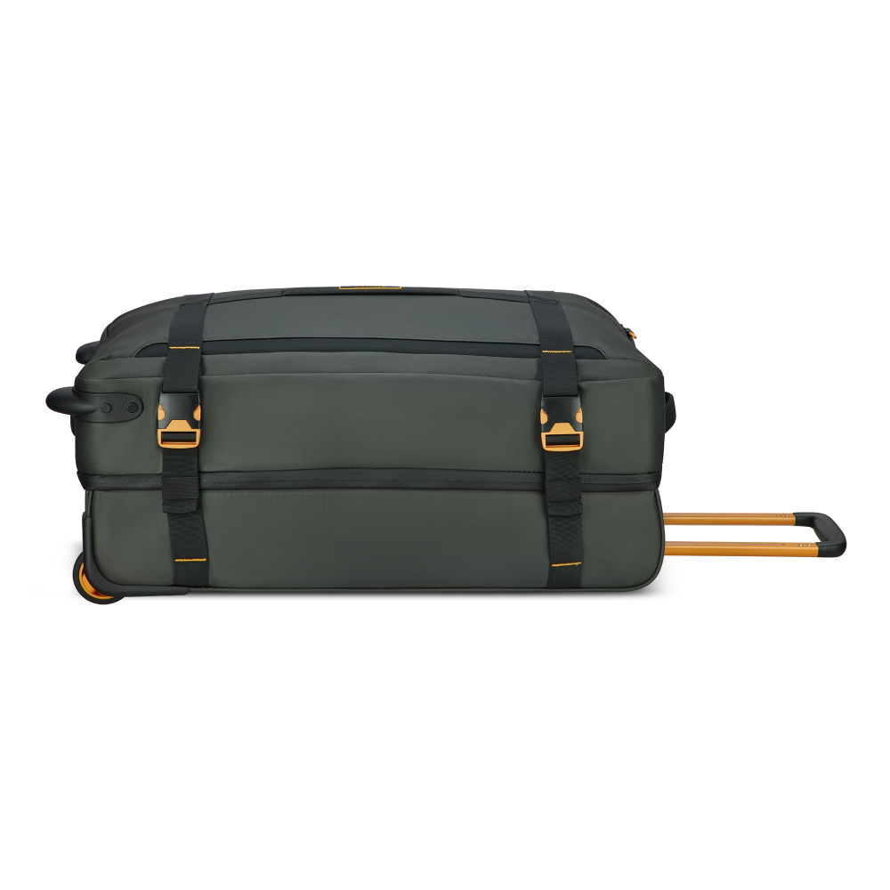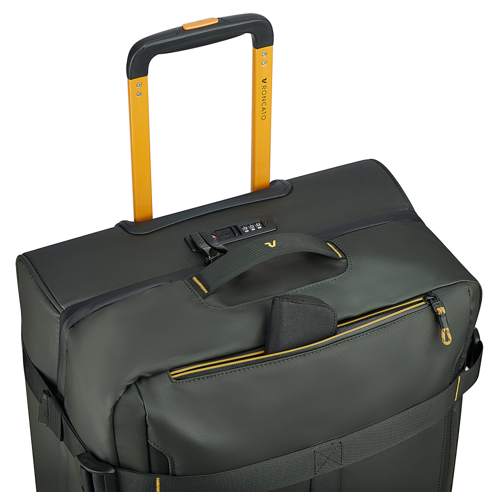 Вироби колекції виготовлені з хвилястого поліестеру 900D з PU-покиттям, яке захищає від дощу, бризок, вологи й швидко сохне. Оброблена поверхня гарантує високу стійкість до стирання та зносу, а також чудову стійкість до зчеплення та розривів, навіть за умов інтенсивного використання. Кожна сумка оснащена водонепроникною блискавкою та кодовим замком TSA-системою що забезпечує максимальну безпеку ваших особистих речей. Практичні відділення з перегородками на блискавці, еластичні ремені для одягу та велика кишеня для розділення брудного одягу. Наявна нижня ручка для полегшення підйому багажу, колеса для зручності переміщення та ніжки для стійкості.