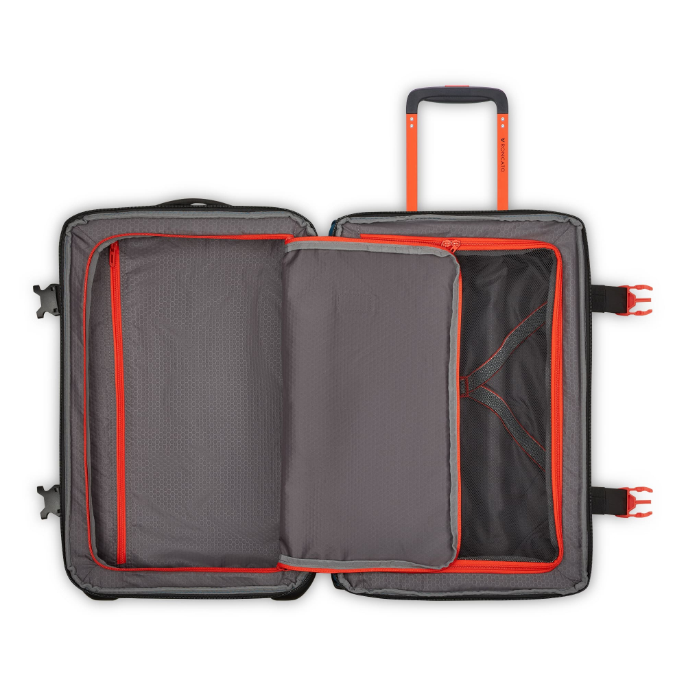 Вироби колекції виготовлені з хвилястого поліестеру 900D з PU-покиттям, яке захищає від дощу, бризок, вологи й швидко сохне. Оброблена поверхня гарантує високу стійкість до стирання та зносу, а також чудову стійкість до зчеплення та розривів, навіть за умов інтенсивного використання. Кожна сумка оснащена водонепроникною блискавкою та кодовим замком TSA-системою що забезпечує максимальну безпеку ваших особистих речей. Практичні відділення з перегородками на блискавці, еластичні ремені для одягу та велика кишеня для розділення брудного одягу. Наявна нижня ручка для полегшення підйому багажу, колеса для зручності переміщення та ніжки для стійкості.